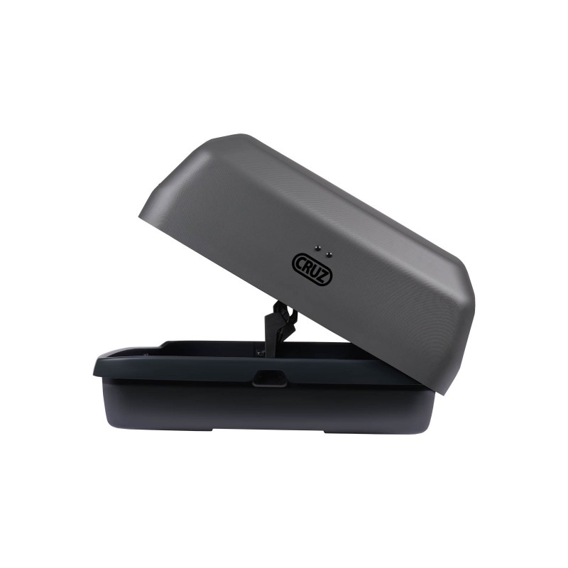 CRUZ Paddock elite roof box features a dual opening system to access the load from both sides of the vehicle.