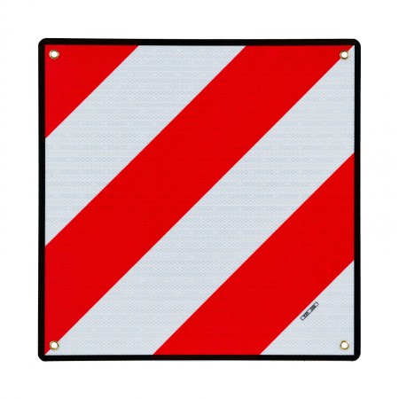 Approved and mandatory plate for the signaling of the load that protrudes through the rear part of the vehicle.