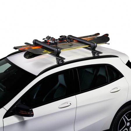 Le porte-skis permet de transporter des skis et des snowboards avec des fixations montées - aucun élévateur requis.