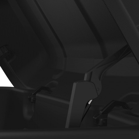 El cofre trasero CRUZ Sector está equipado con cierre centralizado que actúa sobre tres puntos para una mayor seguridad e incluye correas interiores para sujetar la carga.
